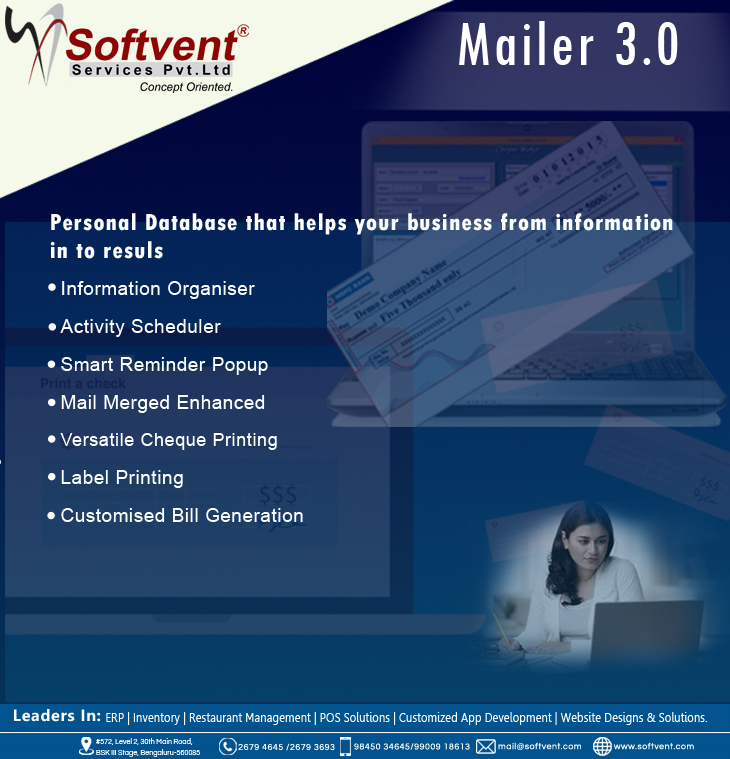 Mailer 3.0 is a comprehensive desktop assistant for heads of companies, secretaries of busy bosses or individuals who have a formidable contact list, helping manage their usually huge list of contacts and tasks related to them.